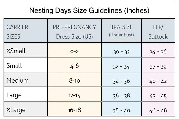 One of the beauties of a Nesting Days Carrier is that it’s sized properly for postpartum body - your body is not “one size fits all” and your carrier shouldn’t be either!