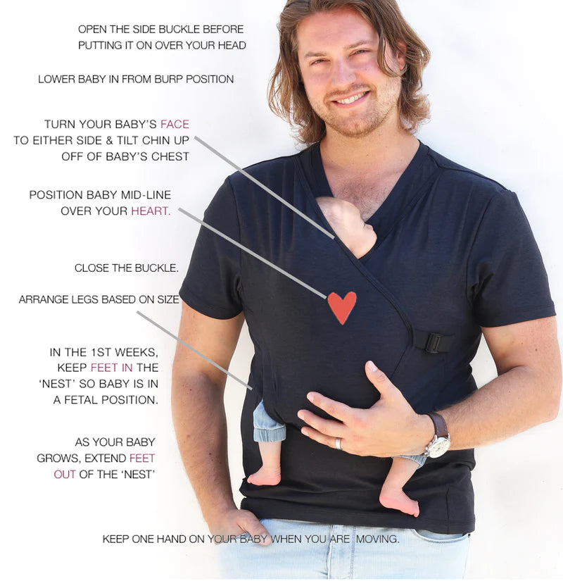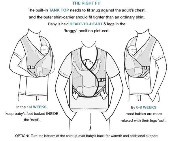 • ALL babywearing traps body heat, so when you feel too warm, take a break. Babies can’t maintain their body heat and cool down quickly.